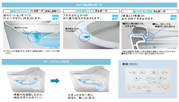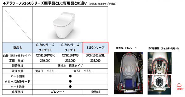 ※タイル床仕様品は便器底辺の接触面が発泡剤になっており床を水洗いした場合にびにくくなっており、タイル床用でないトイレ床にもご使用できるようになっております